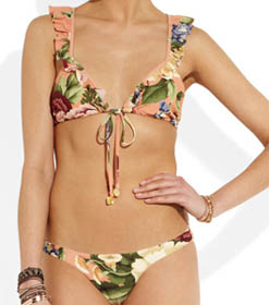 Zimmermann pour ce bikini champêtre et romantique à l’imprimé fleuri et bretelles froufroutantes. A shopper chez Net-a-Porter.