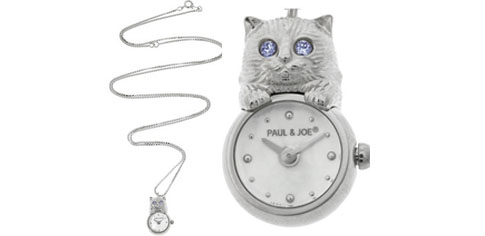 Collier en argent & pendentif chat aux yeux brillants qui donne l’heure. Irrésistible !